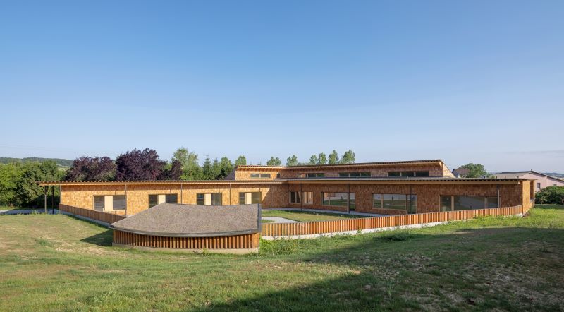 - Points remarquables : Recours aux filières locales. Répétabilité du système constructif et réflexion sur la modularité des espaces. Système constructif en bois massif clavetté local. Démarche environnementale globale, la majorité des cibles de Qualité Environnementale a été traitée. Confort visuel et acoustique.