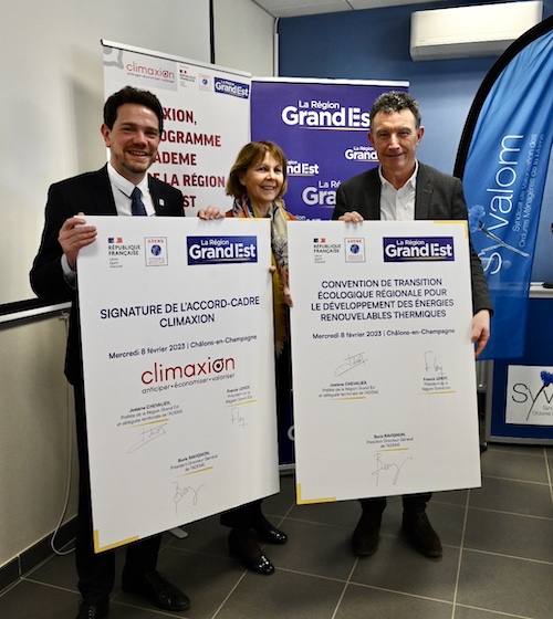C’est une première en France. La signature de cette « Convention de Transition Ecologique » renforce encore plus le partenariat entre l’Etat, l’ADEME et la Région Grand Est, qui s’exprime à travers le programme Climaxion. Cette collaboration nouvelle proposée par la loi 3DS permettra de massifier le développement de la chaleur renouvelable en Grand Est, en mettant en cohérence le travail des deux partenaires et en augmentant sensiblement le nombre de projets soutenus.