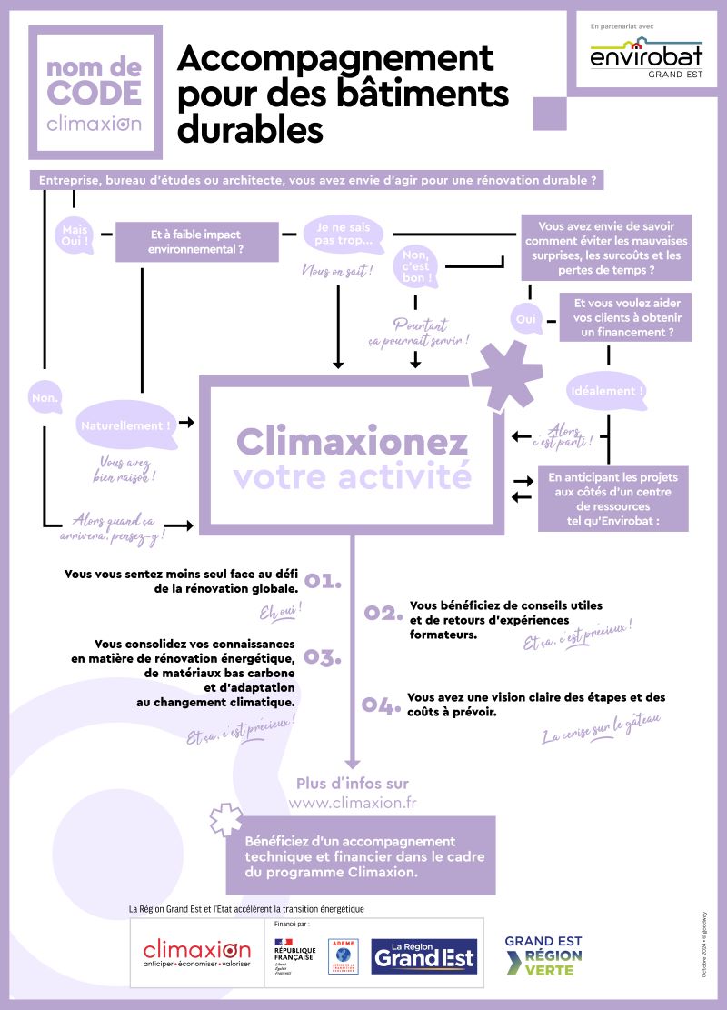 La Région Grand Est et l'ADEME, à travers le programme Climaxion, soutiennent la construction de bâtiments durables et l'accompagnement proposé par Envirobat Grand Est. Sa Directrice, Sylvie Feuga, présente l'accompagnement proposé pour se lancer dans un projet de construction durable.
