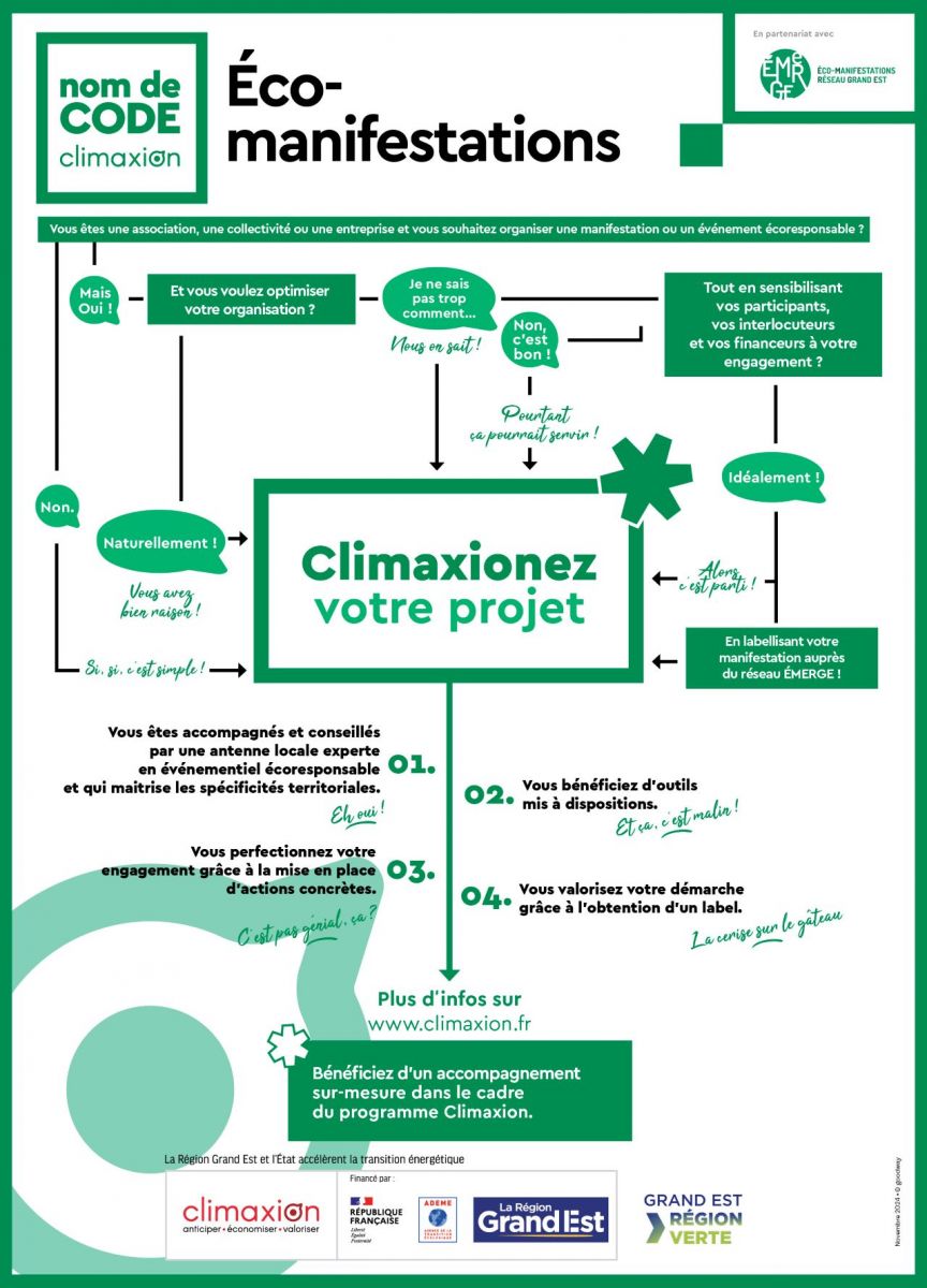 La Région Grand Est et l'ADEME, à travers le programme Climaxion, soutiennent les événements responsables. Que vous soyez une entreprise, une association ou une collectivité, vous avez la possibilité de bénéficier d'un accompagnement par les équipes d'Eco-Manifestation Grand Est (EMeRGE) pour imaginer et construire un événement responsable. Mathilda Wingert, Chargée de mission écolabellisation, présente la marche à suivre.