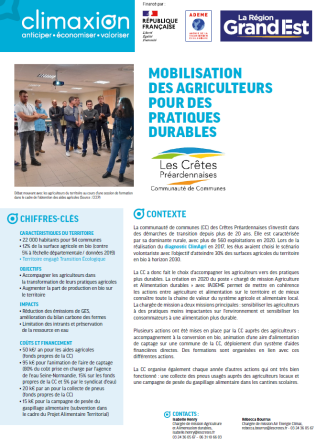 La communauté de communes (CC) des Crêtes Préardennaises s’investit dans des démarches de transition depuis plus de 20 ans. Elle est caractérisée par sa dominante rurale, avec plus de 560 exploitations en 2020. Lors de la réalisation du diagnostic ClimAgri en 2017, les élus avaient choisi le scénario volontariste avec l’objectif d’atteindre 30% des surfaces agricoles du territoire en bio à horizon 2030.