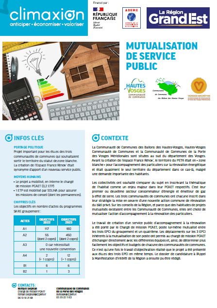 La Communauté de Communes des Ballons des Hautes-Vosges, Hautes-Vosges Communauté de Communes et la Communauté de Communes de la Porte des Vosges Méridionales sont situées au sud du département des Vosges. Avant la création de l’espace France Rénov’, le territoire du PETR était en « zone blanche » pour l’accompagnement des particuliers sur la rénovation énergétique et était quasiment le seul territoire du département dans ce cas-là, malgré une demande importante des habitants.