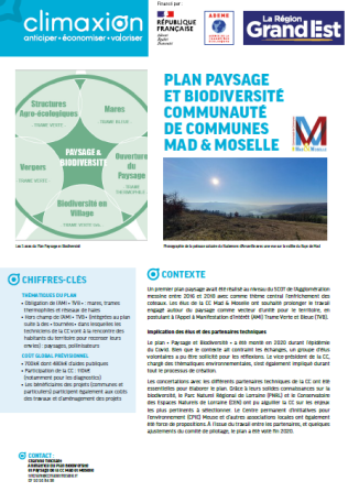 Un premier plan paysage avait été réalisé au niveau du SCOT de l’Agglomération messine entre 2016 et 2018 avec comme thème central l’enfrichement des coteaux. Les élus de la CC Mad & Moselle ont souhaité prolonger le travail engagé autour du paysage comme vecteur d’unité pour le territoire, en postulant à l’Appel à Manifestation d’Intérêt (AMI) Trame Verte et Bleue (TVB).