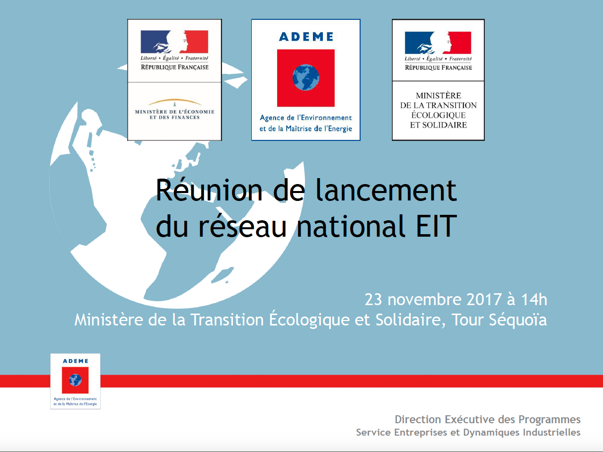 A cette occasion, ont été présentés les enjeux et le processus d’élaboration de la feuille de route économie circulaire, le bilan des travaux EIT de 2015 à 2017, les contributions des acteurs (sollicités par un questback en amont) et les propositions d’organisation du réseau EIT national.
