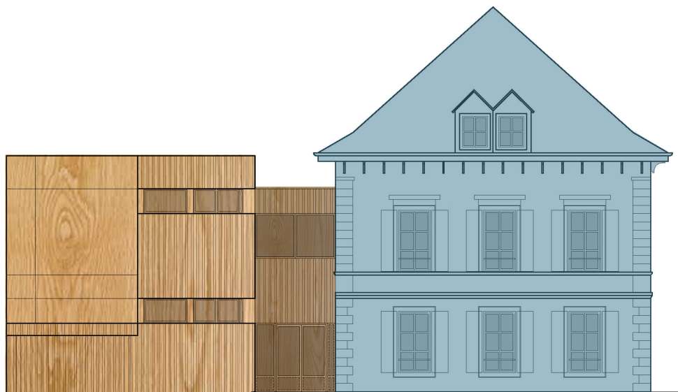 - charpente, finitions intérieures et bardage de façade en bois local