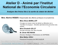 Lors des Rencontres Francophones de l’EIT de 2020, qui se tiennent tous les deux ans à Troyes (et renommées « Congrès RESSOURCES » en 2022), un atelier thématique était dédié au sujet de l’analyse des freins liés à la sortie du statut de déchets. Celui-ci était animé par Marline WEBER, Responsable des affaires juridiques et européennes à l’INEC, et bénéficiait des interventions d’Elora BARILLOT, chargée de mission statut de déchet au Ministère de la Transition Écologique ; d’Elisabeth GELOT, Avocate associée chez SKOV ; Olivier WEYMANN, Directeur stratégie et performance de Soprema ; et de Maïlys GRAU, Présidente et Fondatrice de Circouleur. Vous pouvez visionner cet atelier dans son intégralité sur CE LIEN.